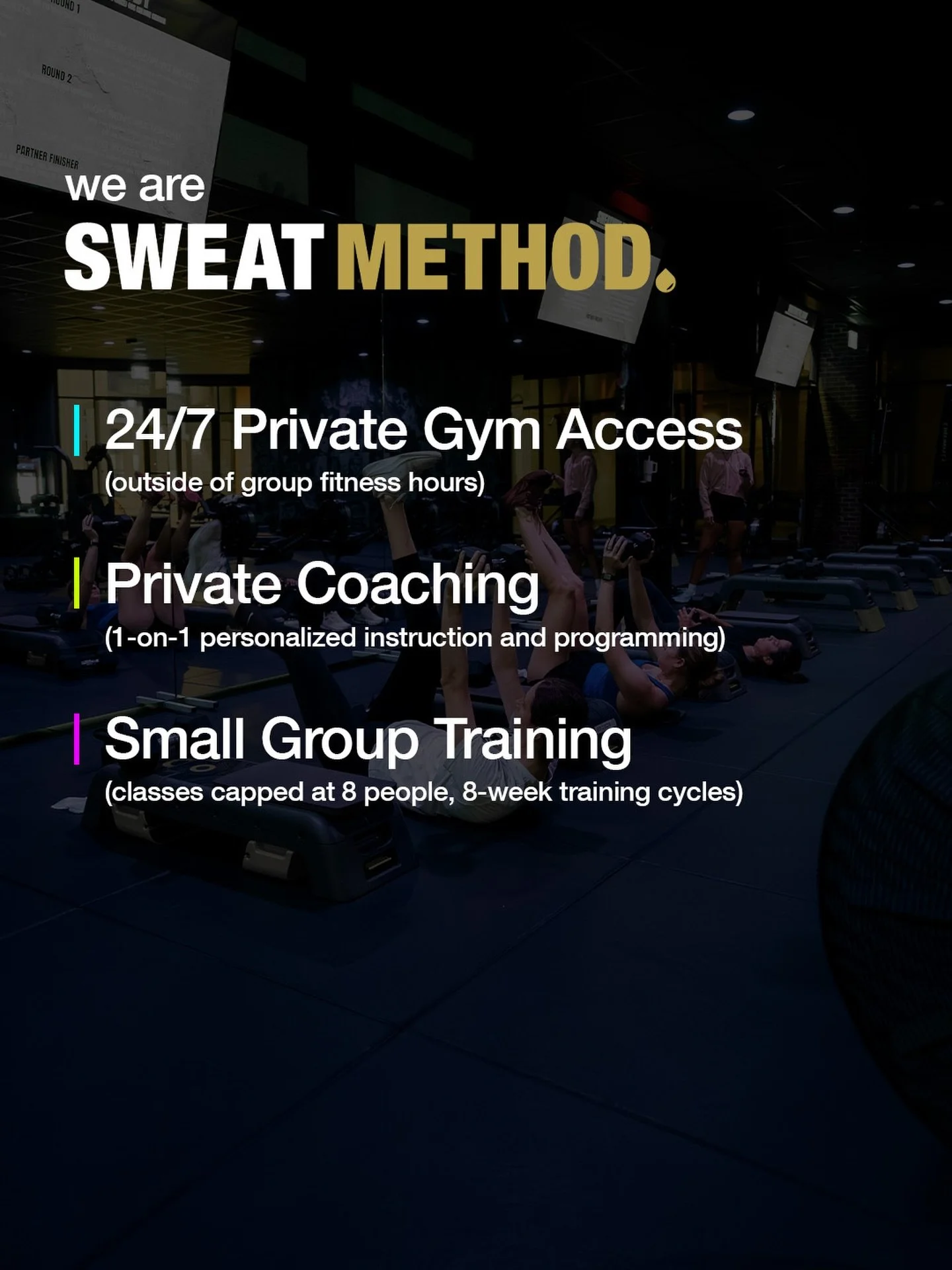 Build healthy communities through convenience, connection and variety. Sweat Method’s 24/7 gym access, 8-week group training programs, and personal training cover the strength, conditioning, and functional fitness needs of our active city. This approach gives our members the opportunity to build consistency, confidence, and competence in the fitness space, and stay committed to an active lifestyle long-term! It’s time for a different approach to your training routine, with other real life sh!t to conquer. IYKYK #dripdifferent
